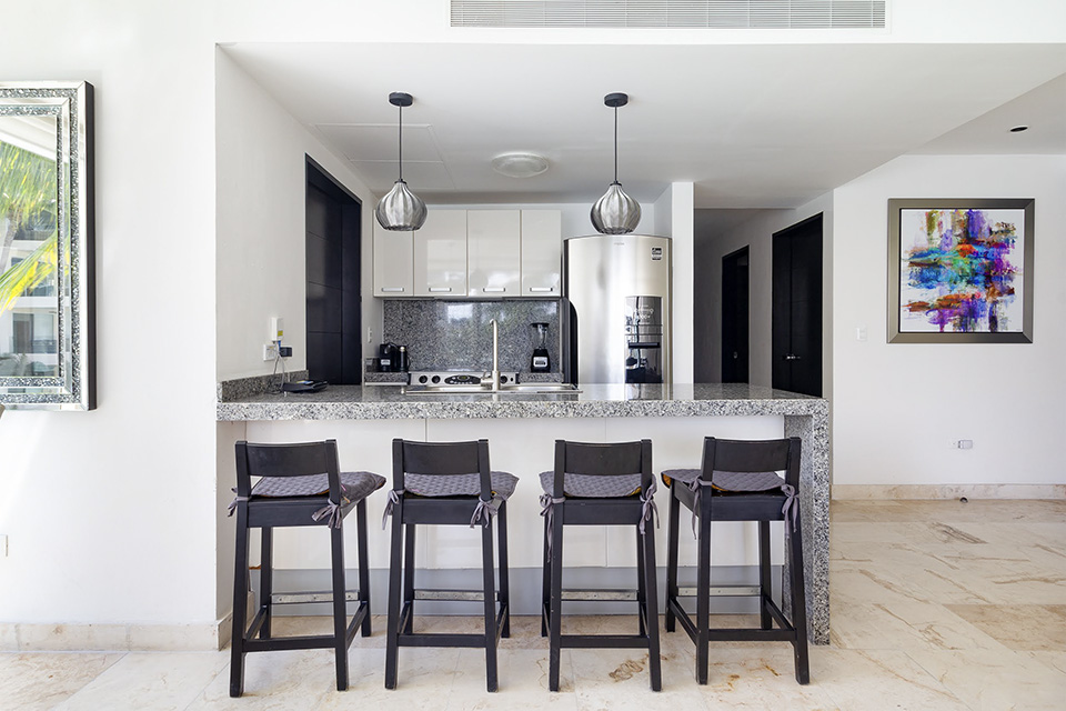 Designed with an open-concept layout, the airy living area flows seamlessly onto a private terrace — perfect for watching the sunrise over the Caribbean or enjoying cocktails in the evening breeze.